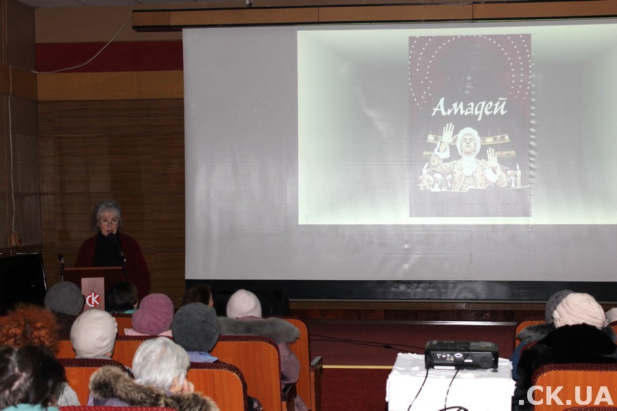На першій в нинішньому році зустрічі в Кіноклубі «Книга на екрані» Черкаської обласної універсальної наукової бібліотеки імені Тараса Шевченка численним глядачам запропонували знакову оскароносну стрічку Мілоша Формана «Амадей», що присвячена одному з найяскравіших композиторів в історії людства, музиканту-віртуозу геніальному Вольфгангу Амадею Моцарту, 270 рокі від дня народження якого виповнюється 27 січня. Фільм, знятий за п’єсою британського драматурга Пітера Шеффера, отримав 8 «Оскарів» і ще 32 нагороди на найпрестижніших міжнародних кінофестивалях.