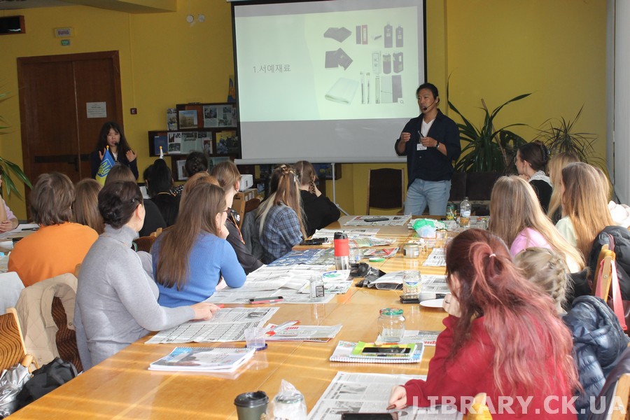Клуб з вивчення корейської мови, що діє при Черкаській обласній універсальній науковій бібліотеці імені Тараса Шевченка, набуває все більшої популярності серед охочих опанувати цю красиву й мелодійну мову. Щосуботи у бібліотеці проходять заняття з вивчення мови, письма, традицій та культури Кореї. У дружній і теплій атмосфері учасники не лише опановують граматику та письмо, розширюють словниковий запас, а й дізнаються багато цікавого про історію, звичаї та побут цієї дивовижної країни.