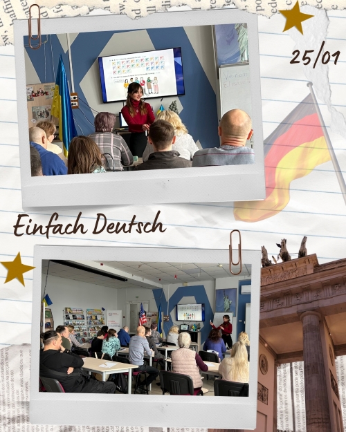 У відділі документів іноземними мовами триває вивчення німецької мови, і наші клубівці роблять чудові кроки вперед, демонструючи помітні досягнення в оволодінні мовою. 25 січня завдяки нашій волонтерці Вероніці протягом зустрічі Einfach Deutsch відвідувачі навчилися правильно писати та озвучувати свої ім’я й прізвище німецькою мовою. Тепер вони вже впевнено можуть представитися і сказати: «Guten Tag, mein Name ist…»