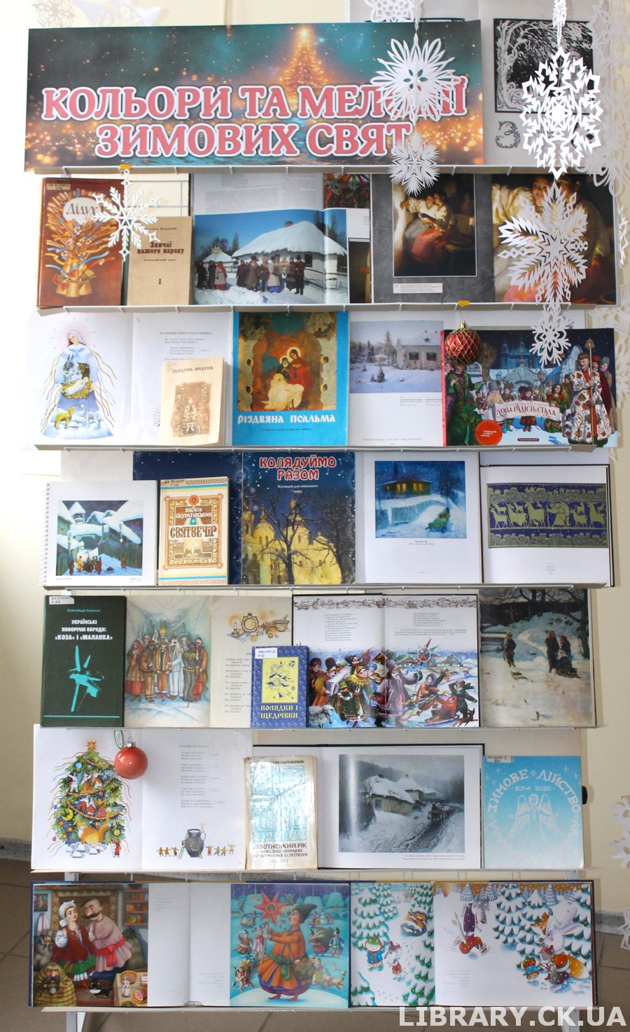 Новорічні свята завжди сповнені неповторним настроєм, очікуванням дива та світлих надій. Відчути атмосферу і дух Різдва, зимових свят, доторкнутися до прадавніх народних джерел допомагають численні книги, ілюстровані видання, які представлено на книжково-ілюстративній виставці «Кольори та мелодії зимових свят» у відділі мистецтв Черкаської обласної універсальної наукової бібліотеки імені Тараса Шевченка.