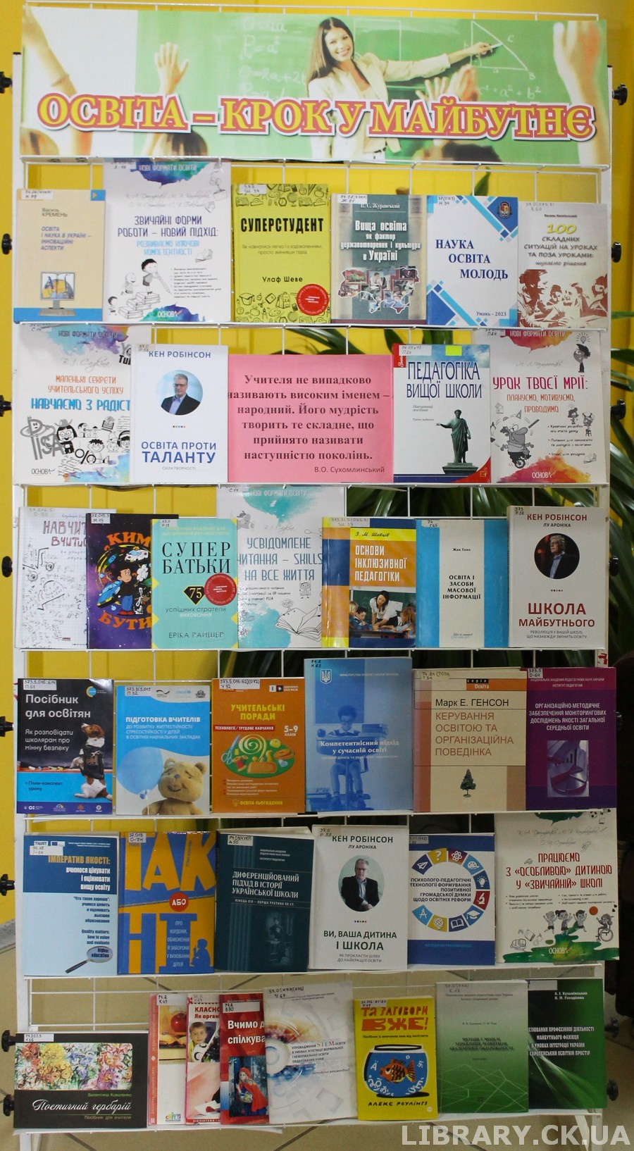 До цієї дати працівники відділу документів з гуманітарних та природничих наук Черкаської обласної універсальної наукової бібліотеки імені Тараса Шевченка підготували книжково-ілюстративну виставку «Освіта – крок у майбутнє», де на вас чекають видання з історії освіти, педагогічні праці видатних мислителів, сучасні методики навчання та книги, що надихають на пізнання нового.