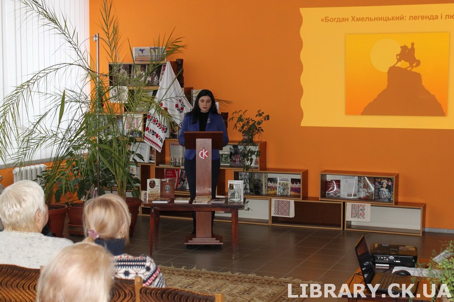 29 грудня в Черкаській обласній універсальній науковій бібліотеці імені Тараса Шевченка відбулося засідання краєзнавчого клубу «Моя Черкащина». Для слухачів Університету ІІІ віку Територіального центру надання соціальних послуг м. Черкаси бібліотекарі відділу краєзнавства провели пізнавальну годину «Богдан Хмельницький: легенда і людина», яка була присвячена до 430-річчя від дня народження славного гетьмана України.