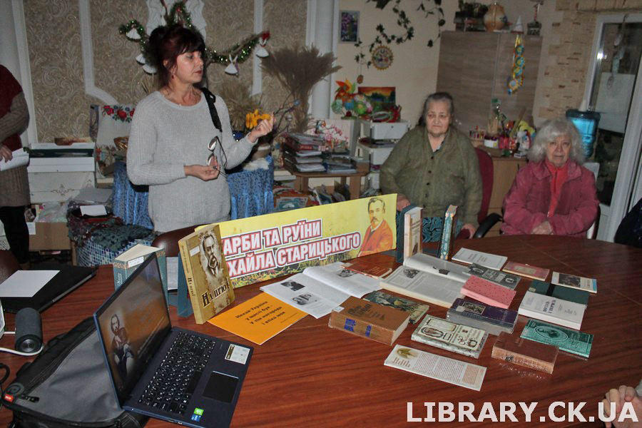 10 грудня працівники відділу документів з гуманітарних та природничих наук Черкаської обласної універсальної наукової бібліотеки імені Тараса Шевченка знову завітали до своїх підопічних – мешканців геріатричного пансіонату. Ця зустріч стала не просто традиційним візитом: ми привезли не лише книги на індивідуальні замовлення, а й підготували для підопічних змістовну літературно-пізнавальну годину, присвячену життю та творчій спадщині нашого видатного земляка, українського драматурга Михайла Старицького. Під час зустрічі присутні переглянули відеопрезентацію «Багатогранність таланту Михайла Старицького», що оживила на екрані образ письменника: його творчі пошуки, драматичні долі героїв, любов до рідної мови й непохитну віру в силу українського духу. А ще ознайомилися з книжковою виставкою, де кожне видання промовляло своїм теплом і історією про митця великого слова. У кімнаті панували спокій, вдячність і особлива тиша – та, яка з’являється тоді, коли слово торкається серця.