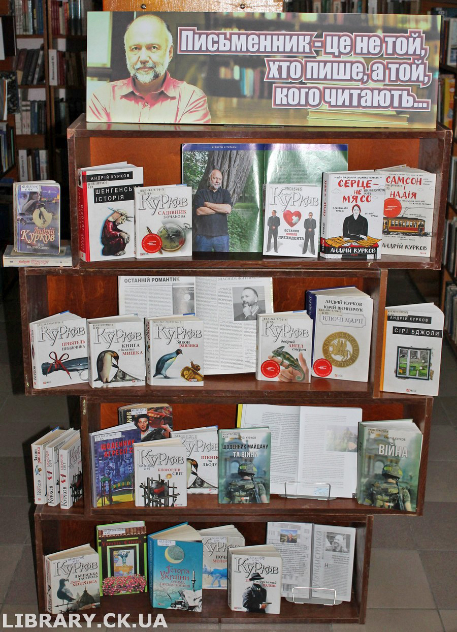 Щиро зичимо міцного здоров’я, успіху та творчого натхнення славному ювіляру і запрошуємо всіх охочих до перегляду виставки-портрета «Письменник – це не той, хто пише, а той, кого читають…», яку розгорнуто у відділі абонемента Черкаської обласної універсальної наукової бібліотеки імені Тараса Шевченка.
