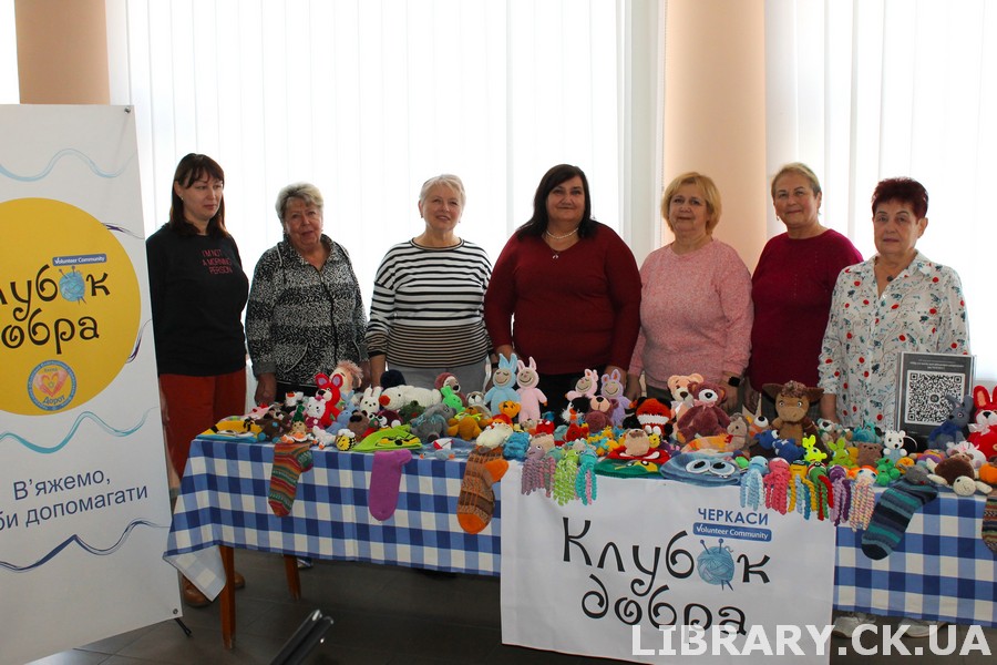 Напередодні Всесвітнього дня рукоділля, який щорічно відзначають 16 листопада, у відділі документів з економічних, технічних та сільськогосподарських наук Черкаської обласної універсальної наукової бібліотеки імені Тараса Шевченка відкрилася виставка робіт «Майстри вишуканих справ», виготовлених руками наших неймовірних майстринь із творчої майстерні «Клубок добра». Кожна річ, представлена на виставці, створена не просто руками, а й зігріта серцем. Теплі в’язані шкарпетки, які поїдуть до наших мужніх захисників, милі іграшки, що дарують дітям відчуття затишку та любові, шапочки та речі для тих, кому важливо знати: про них пам’ятають. За кожним виробом – тиха турбота, щира молитва, побажання миру й добра. Наші майстрині не просто в’яжуть, вони вплітають у нитки надію, підтримку та людське тепло. Щосуботи в майстерні «Клубок добра» народжуються не лише красиві речі, там народжується взаємопідтримка, дружба, натхнення і світло, яке так потрібне зараз кожному.