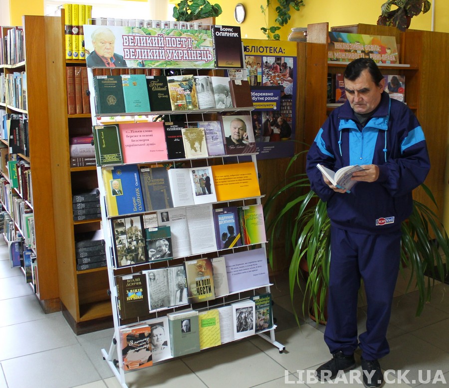 Із цієї нагоди працівники відділу документів з гуманітарних та природничих наук Черкаської обласної універсальної наукової бібліотеки імені Тараса Шевченка підготували виставку-персоналію «Великий поет і великий Українець». До вашої уваги художні твори майстра слова, есе, статті, книжкові та періодичні видання про життя і творчість духовного лідера України – Бориса Олійника.