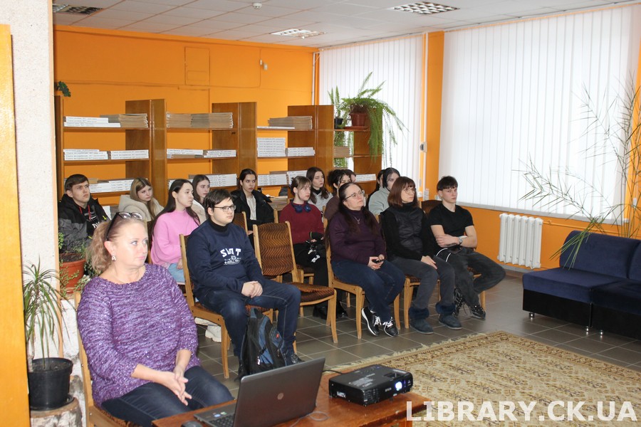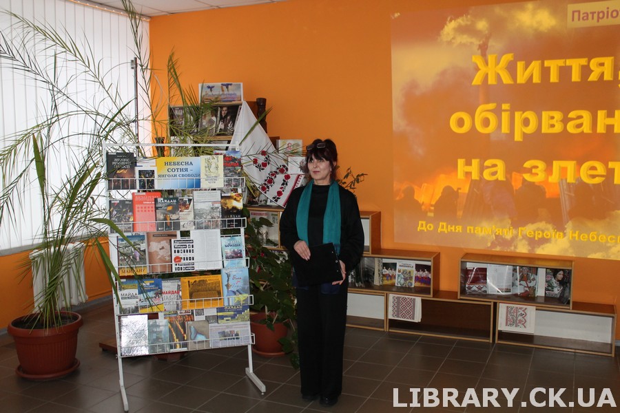 18 лютого у Черкаській обласній універсальній науковій бібліотеці імені Тараса Шевченка відбулася патріотична година «Життя, обірване на злеті», присвячена вшануванню пам’яті Героїв Небесної Сотні – людей, які віддали своє життя за свободу, гідність і право українців жити у вільній державі. Зустріч розпочала модераторка заходу, завідувачка відділу документів з гуманітарних та природничих наук Світлана Сивак з розповіді про найтрагічніші дні масових розстрілів протестувальників під час Революції Гідності 2013–2014 років та значення Дня пам’яті Героїв Небесної Сотні як моменту, що назавжди змінив хід нашої історії. Хвилиною мовчання вшанували пам’ять тих, хто пішов у вічність під прапором України. Далі – разом зі студентами Черкаського музичного фахового коледжу ім. С. Гулака-Артемовського пройшли складний шлях спогадів: згадали трагічні події лютневих днів 2014 року і всіх, хто першим став до бою за нашу свободу та європейський вибір. Кадри документального відео нагадали всім про ціну, яку ми заплатили за право бути вільними.