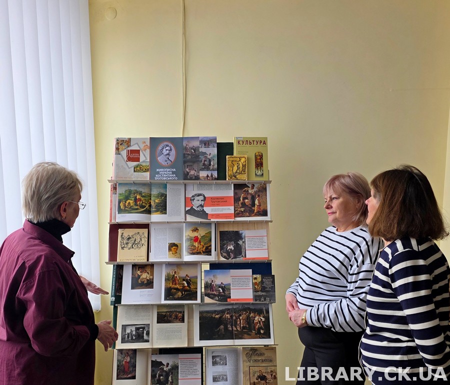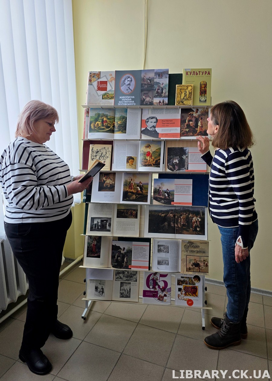 До 200-річчя від дня народження митця у відділі мистецтв Черкаської обласної універсальної наукової бібліотеки імені Тараса Шевченка підготовлено книжково-ілюстративну виставку «Живописна Україна Костянтина Трутовського». На ній представлено мистецькі альбоми живопису та графіки, репродукції жанрових картин художника. Найвідоміші серед його творів: «На кладці», «Жінка з полотном», «Одягають вінок», «Весільний викуп», «Великдень в Україні», інші полотна, в яких автор щиро та лірично зображує побут, народні звичаї та обряди, картини з українського життя.