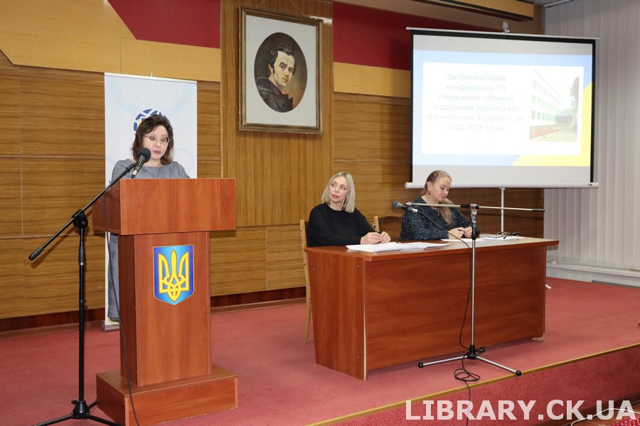 Із ґрунтовною звітною доповіддю виступила голова ГО «Черкаське обласне відділення Української бібліотечної асоціації» Людмила Дядик. У своєму виступі вона охарактеризувала діяльність відділення за звітний період, акцентувала на важливості членства у професійній спільноті, окреслила ключові досягнення та основні напрями подальшої роботи. Підсумки фінансової діяльності відділення представила голова ревізійної комісії Алла Зимовець.
