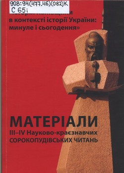 Історія Канівщини в контексті історії України: минуле і сьогодення [Текст] : матеріали ІІІ–ІV Наук.-краєзнав. Сорокопудів. Читань, [Канів], 17 верес. 2020 р., 20 жовт. 2022 р. / Шевченків. нац. заповідник, Черкас. обл. орг. Нац. спілки краєзнавців України, Канів. Міськрада ; [упоряд.: О. М. Ісаєва та ін. ; редкол.: В. М. Коваленко та ін.]. – Канів : Панмедія, 2023. – 333 с. : іл.