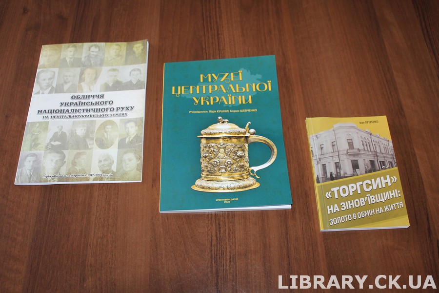 Книга Івана Петренка «Торгсин на Зінов’ївщині: золото в обмін на життя» — глибоке дослідження трагічних сторінок нашої історії. Автор відкриває маловідомі факти про те, як у роки Голодомору система «Торгсин» стала інструментом виживання для одних і трагедією для інших, коли людські долі вимірювалися коштовностями. Видання «Музеї Центральної України», підготовлене Лідією Кушнір та Борисом Шевченком, є справжньою подорожжю музейними просторами Кіровоградщини. Книга розповідає про історію створення музеїв, унікальні експозиції, колекції та людей, які з любов’ю зберігають культурну спадщину регіону. А у виданні «Обличчя українського націоналістичного руху на Центральноукраїнських землях», упорядкованому Сергієм Хмарою та Артемом Безшкуренком, оживають постаті тих, хто у 40-х роках ХХ століття став обличчям визвольного руху. Світлини, біографічні довідки, документи – усе це створює потужне відчуття причетності до історії боротьби за незалежність України.