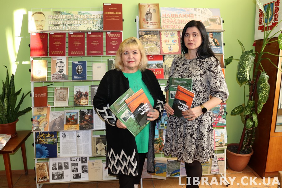 Фонд Черкаської обласної універсальної наукової бібліотеки імені Тараса Шевченка поповнився цінними краєзнавчими виданнями завдяки кандидатці економічних наук, доцентці, голові Правління ГО «КолоОбіг» Світлані Беляєвій. Передані книги є важливим внеском у збереження природної та культурної спадщини Черкащини. Збірник «Еко-билини та казки Тясмину» знайомить читачів із унікальним природним світом краю, формує дбайливе ставлення до довкілля та поєднує екологічну тематику з художнім словом. Особливої цінності виданню надає поетичний розділ із творами поета-шістдесятника, журналіста Станіслава Буряченка, батька пані Світлани, творчо пов’язаного з Василем Симоненком. Видання «Парк-пам’ятка садово-паркового мистецтва загальнодержавного значення «Козачанський»» розкриває історію, екологічні особливості та туристичний потенціал території села Козацьке Звенигородського району.